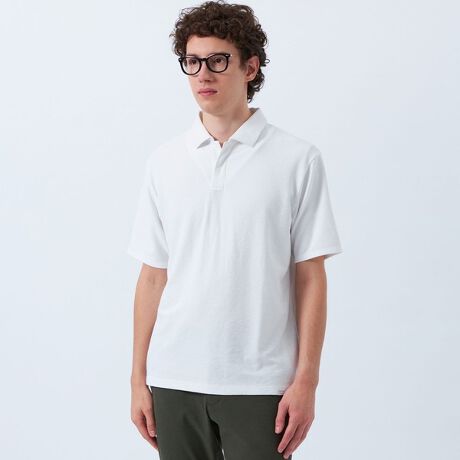 凹凸感で肌離れの良い、着心地の良いスキッパーポロシャツ