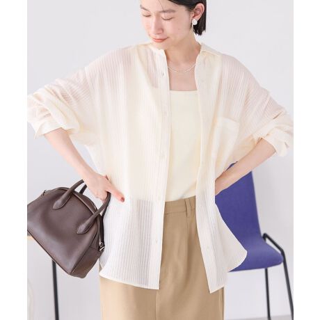 程よい肌見せが叶うシャドーストライプデザインシャツ。柔らかな素材で通気性も良く、スイッチシーズンの羽織にぴったりな1枚です。ナチュラルに体型カバーが叶う程よいオーバーシルエットなのも嬉しいポイント。薄手のシアー素材でさらっと羽織としてはもちろん、タックインスタイルもすっきり決まるおすすめのアイテムです。透け感[あり]