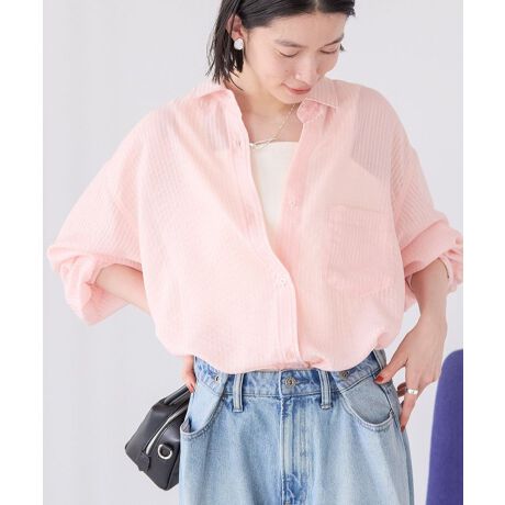 シアーシャツ シアー素材 レイヤード 重ね着 トレンド ゆったり トップス レディース 女性 体型カバー シンプル 無地 春 夏 25SS AMERICAN HOLIC AMERICAN HOLIC アメリカンホリック アメホリ