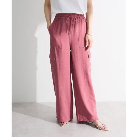 凸凹感が魅力的なドビー素材で仕立てたカーゴパンツ。ゆったりとしたワイドシルエットにサイドポケットを加えたカジュアル感溢れるデザインです。ウエスト総ゴム仕様のストレスフリーな着用感も魅力的。さっぱりとした生地感でサマーシーズンにも快適に着られるおすすめのアイテムです。透け感[なし]