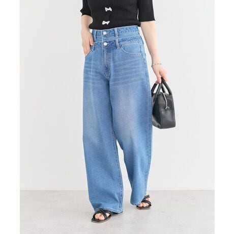 ダブルウエストをポイントにしたこなれ感たっぷりなデニムパンツ。レーヨン混で斜めに伸縮性のあるソフトなデニム生地で、動きやすいストレスフリーな履き心地です。程よくワイドなストレートラインに、スタイルアップ効果も嬉しいハイウエストデザイン。オンするだけでトレンドライクなスタイルが楽しめるおすすめの1枚です。透け感[なし]