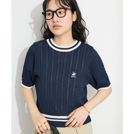 *BEVERLY HILLS POLO CLUBとのコラボレーションアイテム。繊細な細糸を使用したケーブル編みデザインが上質感あるニットプルオーバー。