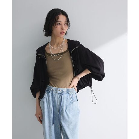 爽やかなシアー素材がシーズナルな雰囲気溢れるマウンテンパーカー。落ち感のあるワイドシルエットにクロップド丈がトレンドライクなデザインです。裾のドロストでフォルムアレンジも自在。軽やかな素材感で春夏シーズンのライトアウターとして活躍してくれるおすすめのアイテムです。透け感[あり]
