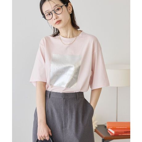 メタリックに煌めく箔プリントがスタイリッシュなTシャツ。グラフィカルなロゴとかすれディテールを施したボックスデザインがモード感のあるひと品です。肌触りのよいコットンベース生地の快適な着心地も魅力的。一枚さらっと着るだけでこなれたカジュアルスタイルが決まるおすすめのアイテムです。透け感[ややあり]