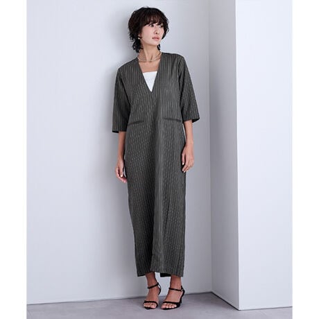 深めのネックラインでレイヤードも映えるワンピース。