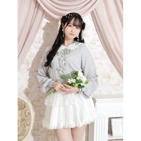 ブラウスと合わせた甘めのコーディネートがおすすめです。