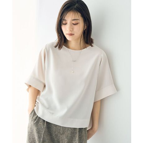 軽やかな着心地が魅力のデザインブラウス。落ち感のある袖とゆったりとしたドルマンシルエットがフェミニンな印象を引き立てます。着脱しやすいバックボタン付きで、使い勝手も抜群。シンプルなワンカラーでボトムを選ばず、デイリーからオフィスシーンまで幅広く活躍してくれるおすすめのアイテムです。透け感[ややあり]