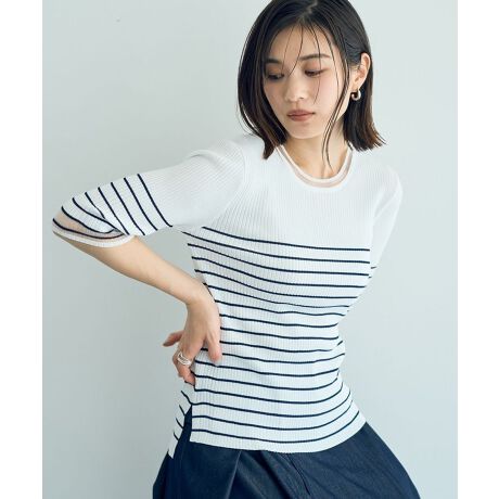 シアーMIX5分袖ニット