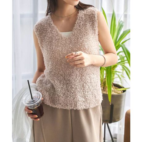 コーデが一気に華やぐチョウチョヤーンフリンジベスト。