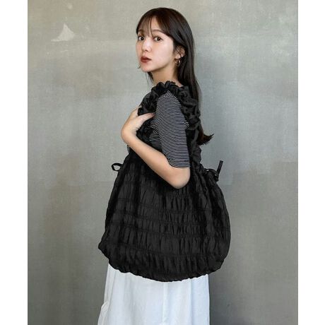 ふんわりフォルムが魅力のシャーリングバッグ。