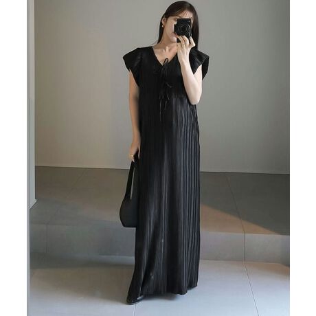 繊細なプリーツが動くたびに軽やかに揺れ、エレガントな雰囲気を演出するプリーツワンピース。