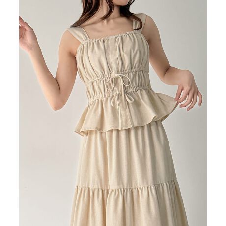 リネン混フロントリボンビスチェ+ティアードスカートset