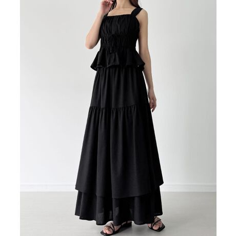 リネン混フロントリボンビスチェ+ティアードスカートset