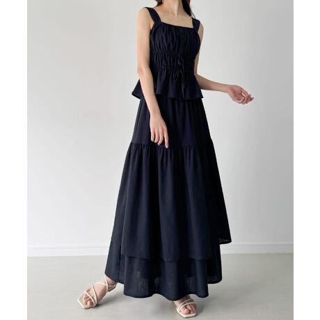 リネン混フロントリボンビスチェ+ティアードスカートset