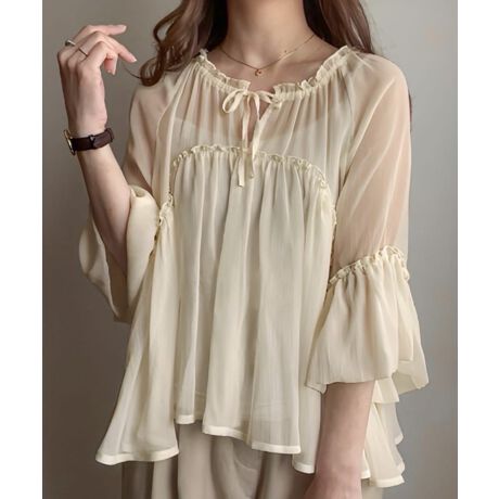 シアーギャザーフリルブラウス