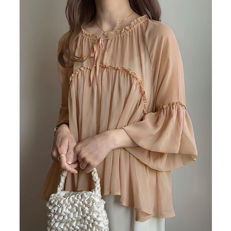 シアーギャザーフリルブラウス
