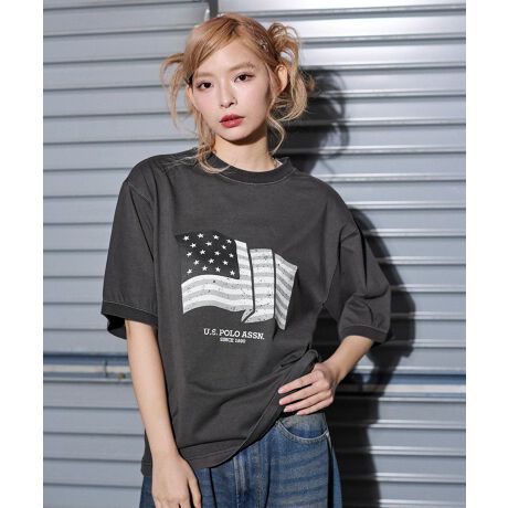 U.S. POLO ASSN. /ユーエスポロアッスン 別注 ヴィンテージ加工天竺グラフィックフラッグTシャツ