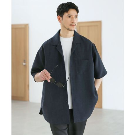 襟のデザインには通常のレギュラーカラーに比べてラフな印象を与えるオープンカラーを採用。普通のシャツほどはカッチリと決まりすぎず、程よく力の抜けたこなれ感のあるコーデが楽しめます。身幅も広めに取り、窮屈感のないゆったりとしたオーバーサイズシルエットで楽な着心地に仕上げました。涼しい生地感も相まって、リゾート地への旅行などにもぴったりの快適な一着となっております。