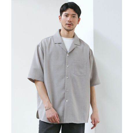 テックキャンバスドオーバーサイズオープンカラーシャツ半袖