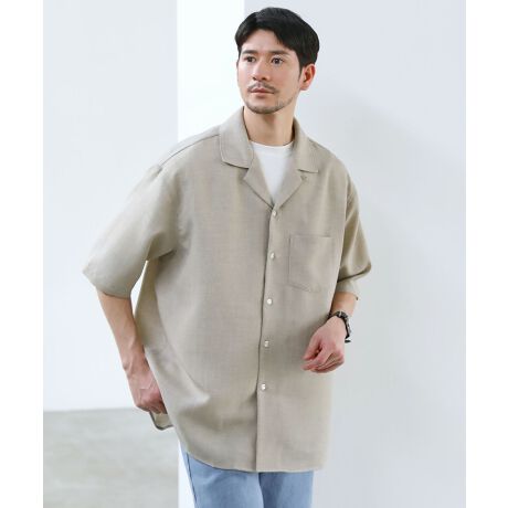 襟のデザインには通常のレギュラーカラーに比べてラフな印象を与えるオープンカラーを採用。普通のシャツほどはカッチリと決まりすぎず、程よく力の抜けたこなれ感のあるコーデが楽しめます。身幅も広めに取り、窮屈感のないゆったりとしたオーバーサイズシルエットで楽な着心地に仕上げました。涼しい生地感も相まって、リゾート地への旅行などにもぴったりの快適な一着となっております。