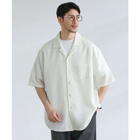 テックキャンバスドオーバーサイズオープンカラーシャツ半袖