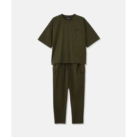・シンプルなTシャツ型トップスとカーゴポケット付きパンツのセットアップ