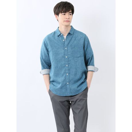 m.f.エディトリアル リネン混 レギュラーカラー7分袖シャツ
