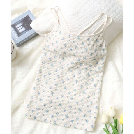 JEMORGAN (ジェーイーモーガン)ボーダー&花柄 ワッフル総柄サーマルブラキャミソール レディース/ブラトップ/カップ付きインナー #バレエコア #コケットコア