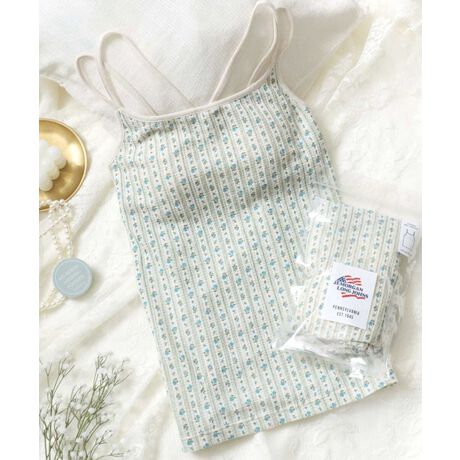 JEMORGAN (ジェーイーモーガン)ボーダー&花柄 ワッフル総柄サーマルブラキャミソール レディース/ブラトップ/カップ付きインナー #バレエコア #コケットコア