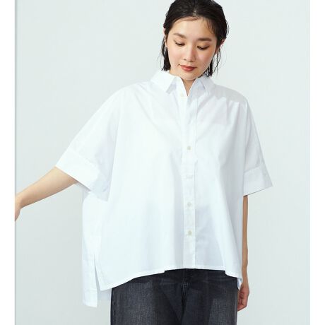【直営店・EC別注】ボクシーハーフスリーブシャツ/体型カバー