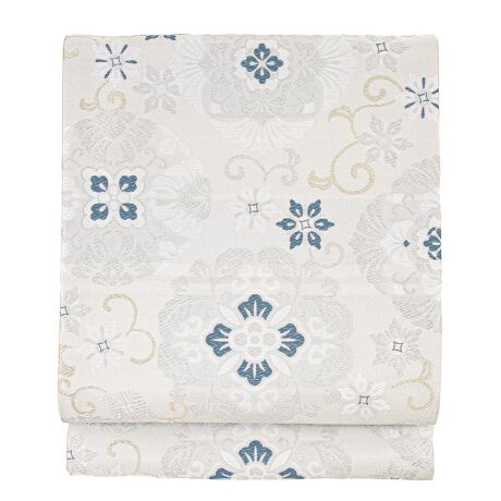金色や銀色に輝く糸で美しい文様が織り込まれた華やかなデザインです。