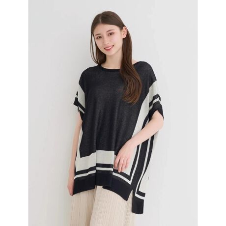配色ラインのデザインがコーデのアクセントに映えるチュニック