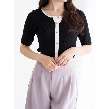 カーディガンのような前開き風のフェイクデザインが大人フェミニンなニットトップス