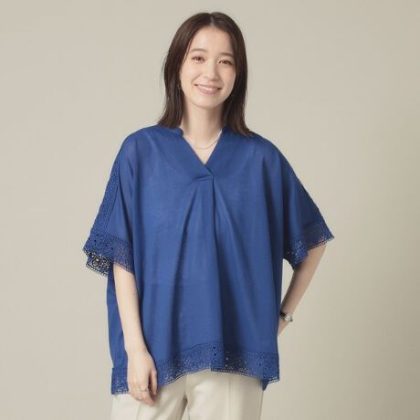 袖口と裾のさり気ないレースの透け感が涼し気。