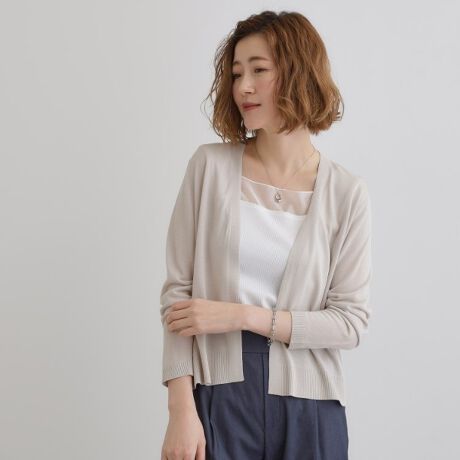 透けるほどの薄い素材なので、夏の冷房避けにちょうどよいです。シルエットもスッキリしていて、オフィスでも綺麗に着れます。