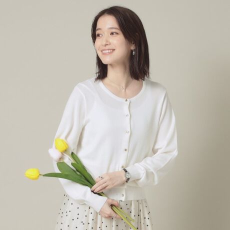 ONにもOFFにも使えるベーシックなクルーネックニットカーディガン。