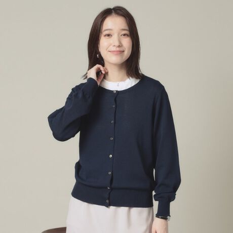 ONにもOFFにも使えるベーシックなクルーネックニットカーディガン。