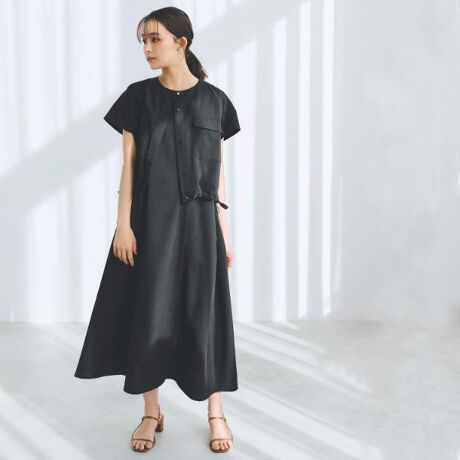 ワンピースはパネルラインを施し、シンプルながらも美しいシルエットが際立つデザインです。