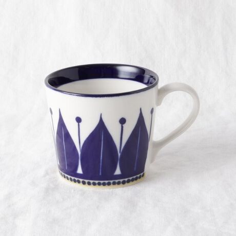 柄が大きくプリントされた北欧風のデザインがお洒落な磁器製のマグカップです。