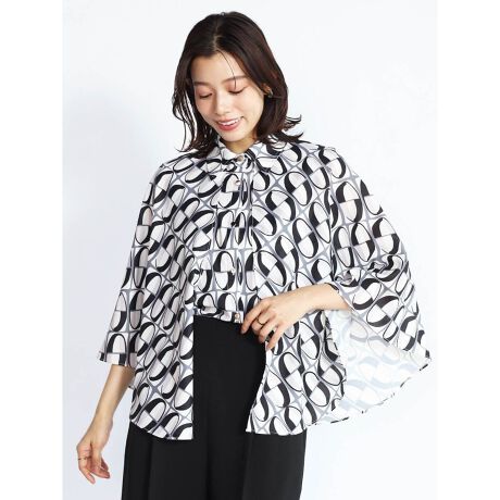 ノースリーブシャツをベースにケープ袖が付いた、トレンドライクなブラウス。