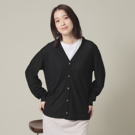 薄手で軽さのある梨地素材のジャージーカーディガン。
