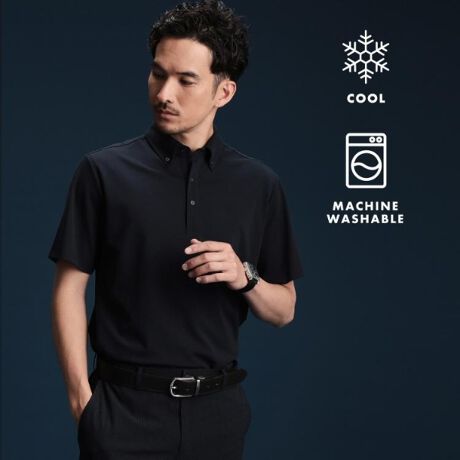 肩幅があるので、Lサイズを選んで正解でした。触った瞬間ひんやりしているので、汗をかいても安心。きちんと感を演出できるすっきりめのシルエットと崩れにくい襟元です。