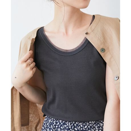 [型番:3053015809]上品な光沢のラメ糸を使用したリブタンクトップです。●ポイント一見シンプルなデザインですが、衿ぐりと袖口のチュール使いがディティールポイントです。●おすすめコーデキャミワンピースを重ねたり、ベストやアウターのインナー使い等にもぴったり。様々な着回しを楽しめる一枚をこの機会にぜひ。