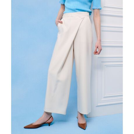 アシンメトリーなタックがポイントの少し辛めのパンツ。