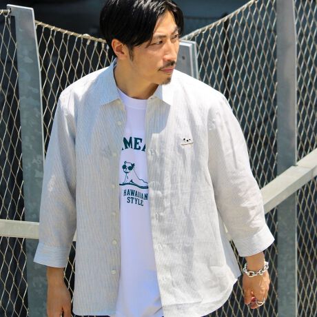 夏に活躍間違いなしのリネンを使用したレギュラーカラー7分袖シャツ (無地/ストライプ)が再登場です。