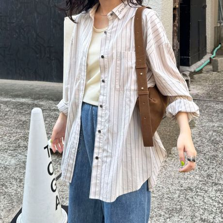 ・1枚ではもちろん、羽織りやベストと合わせて襟元をチラッと見せるスタイリングもオススメ!