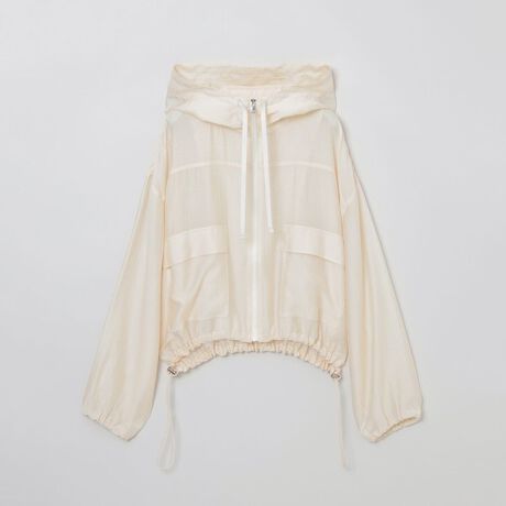 シアーな素材感で軽く羽織れるフーデッドブルゾン。