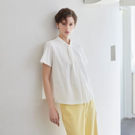 <清涼感のある素材のタックデザインカットソー>