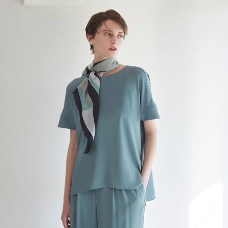 表面がジョーゼット組織で、落ち感とドレープ性のあるバックサテン素材を使用しています。
