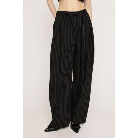 【CENTER TAPE TUCKED TROUSERS】■POINT:センターシームデザインがポイントのリラックス感のあるはき心地のトラウザー。■DETAIL:フロントの重なりディテールとあえて表に出した断ち切りシームデザインが着用するだけでポイントに。程よい太さのストレートシルエットで後ウエストはゴム仕様になっているので、ストレスフリーでデイリー使いしやすいアイテムとなっています。■STYLING:一枚で様になるパンツなので、シンプルなトップスをインしたり、クロップ丈のシャツですっきりと見えるスタイリングがおすすめです。カジュアルから綺麗めまで様々なスタイリングを楽しんで頂けます。■FABRIC/MATERIAL:シワになりにくいポリエステル素材を使用しています。※本品は素材の特性上色落ちします。洗濯、クリーニング、着用(使用)時に他の衣類や雑貨、家具類に色移りする事があります。特に汗や雨等で湿った状態では、色落ちが顕著になります。白、淡色との組み合わせは避け、お取り扱いには十分ご注意下さい。本品は裁ち切り始末にしています。着用や洗濯、クリーニングの繰り返しにより、ほつれが増したり、裁ち切り部分が丸まってくる事がありますので、ご了承下さい。ほつれが目立った際はほつれた糸を引っ張ったりせず、カットして下さい。[注意事項]※画像の商品はサンプルです。実際の商品と仕様、加工が若干異なる場合があります。※画像の商品は光の照射や角度、お使いのモニター環境により、実物と色味が異なる場合がございます。※着用、お取り扱いの際は、アテンションタグをご確認ください。※一部予約商品につきましては生産上の都合によりお届け予定日や店頭発売と前後する場合もございます。※追加生産商品は、一部の店舗、通販で販売中の場合がございます。予めご了承下さい。